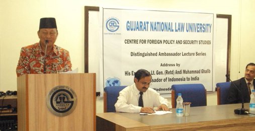 The Indonesian Ambassador H.E. Lt. Gen. (Retd) Andi M. Ghalib along with Councellor Leonard F. Hutabarat, Councellor –Political Affaris and Dr. Son Kuswadi Education attaché visited GNLU today and H.E the ambassador addressed the Students today, Wednesday, 20 July 2011.