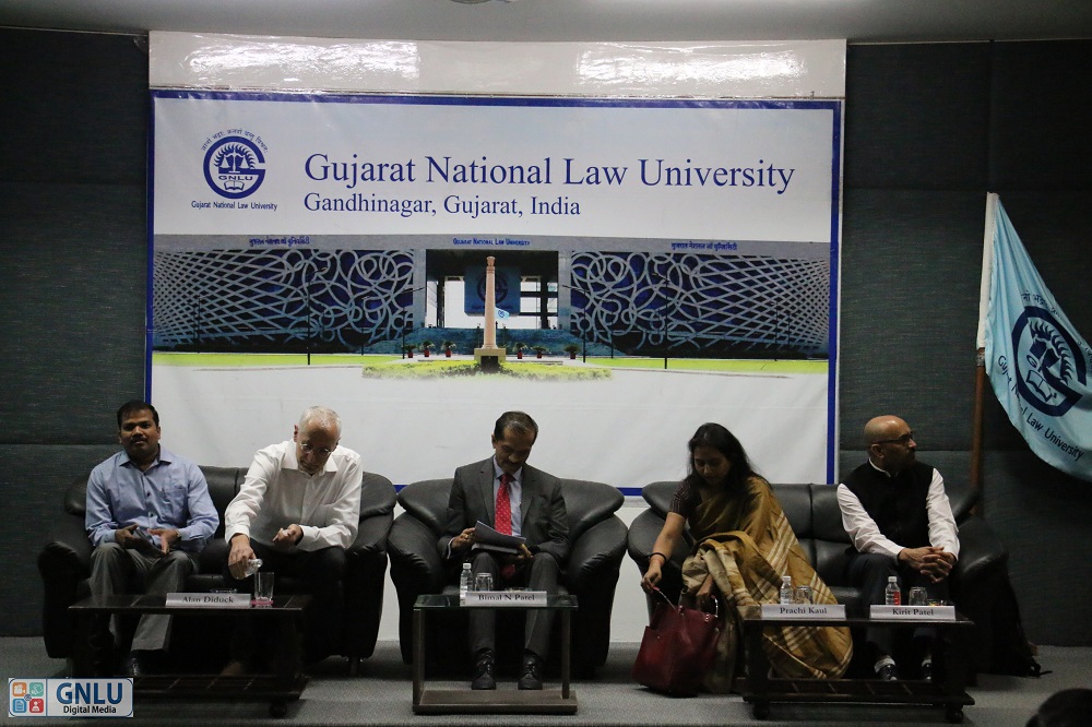 The symposium was graced by Prof. (Dr.) Bimal N. Patel, Director of GNLU and Member of the National Security Advisory Board, Government of India, Dr. Prachi Kaul, Director of the Shastri Indo Canada Institute, New Delhi, Prof. Alan Diduck from the University of Winnipeg, Canada and Prof. Kirit Patel from the Menno Simons College, CMU, Canada. They have drawn attention of theoretical insights of law and development scholars who have questioned traditional meanings of environmental justice based simply on principles of fair treatment and equity in distribution of environmental risk. Prof. Patel stressed upon the development is sustainable when it “meets the needs of the present without compromising the ability of future generations to meet their own needs.” The principles of sustainable development are enshrined in the 1992 Rio Declaration on Environment and Development and confirmed in subsequent instruments. They include equity and justice for present and future generations - inter - and intra - generational equity; and recognize that “Human beings are at the centre of concerns for sustainable development.