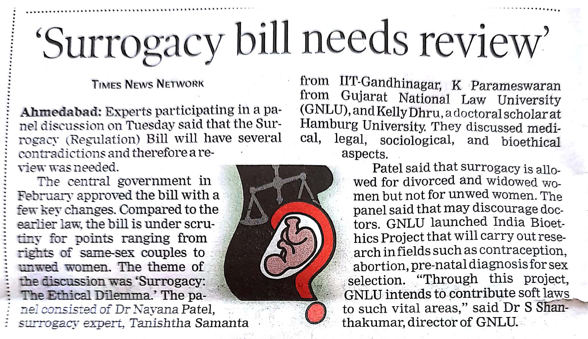 GNLU INDIAN BIOETHICS PROJECT Panel Discussion on ‘Surrogacy : The Ethical Dilemma’ (3 March, 2020)
